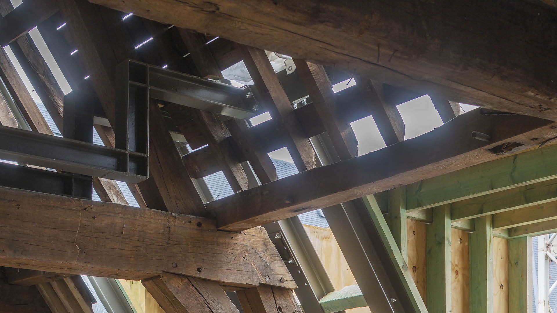 Une capacité portante en acier pour les fermes en bois du monastère restauré