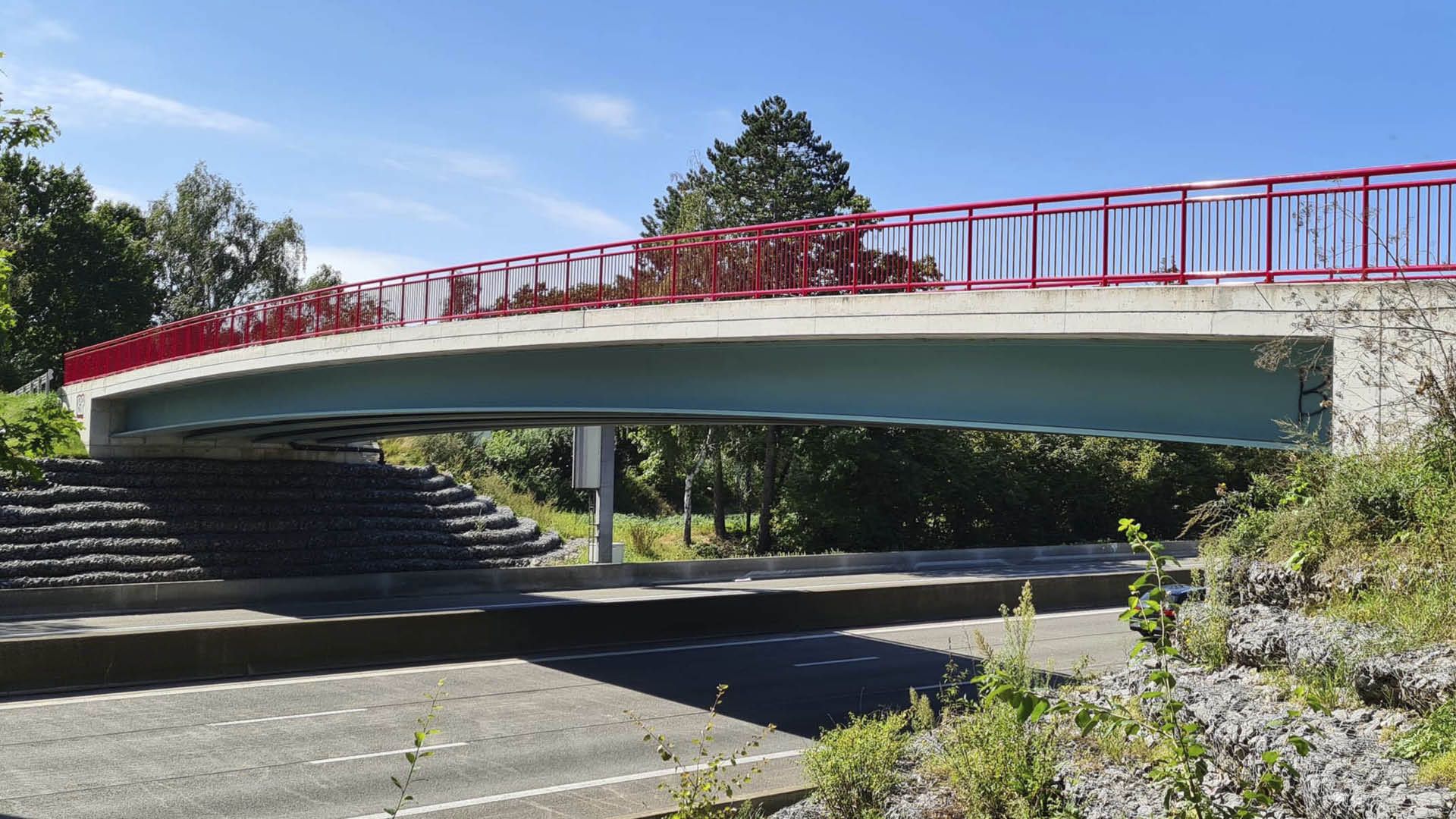 Le pont cyclable permet au trafic cycliste de traverser l'autoroute avec deux voies de 2,5 m. Une voie est également prévue pour le trafic routier local. Le pont remplace un pont précontraint qui a dû être démoli à la suite d'une collision. Une plus grande portée a été prévue pour permettre une éventuelle expansion de l'autoroute sous-jacente.