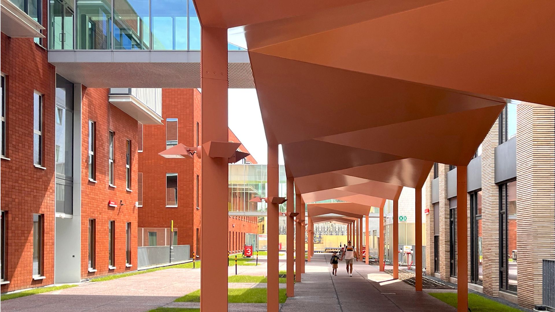 Cet auvent en acier d'environ 120 m a été conçu comme une longue zone de fonctionnement à sec dans la rue Rouge du centre hospitalier universitaire Gasthuisberg à Louvain.