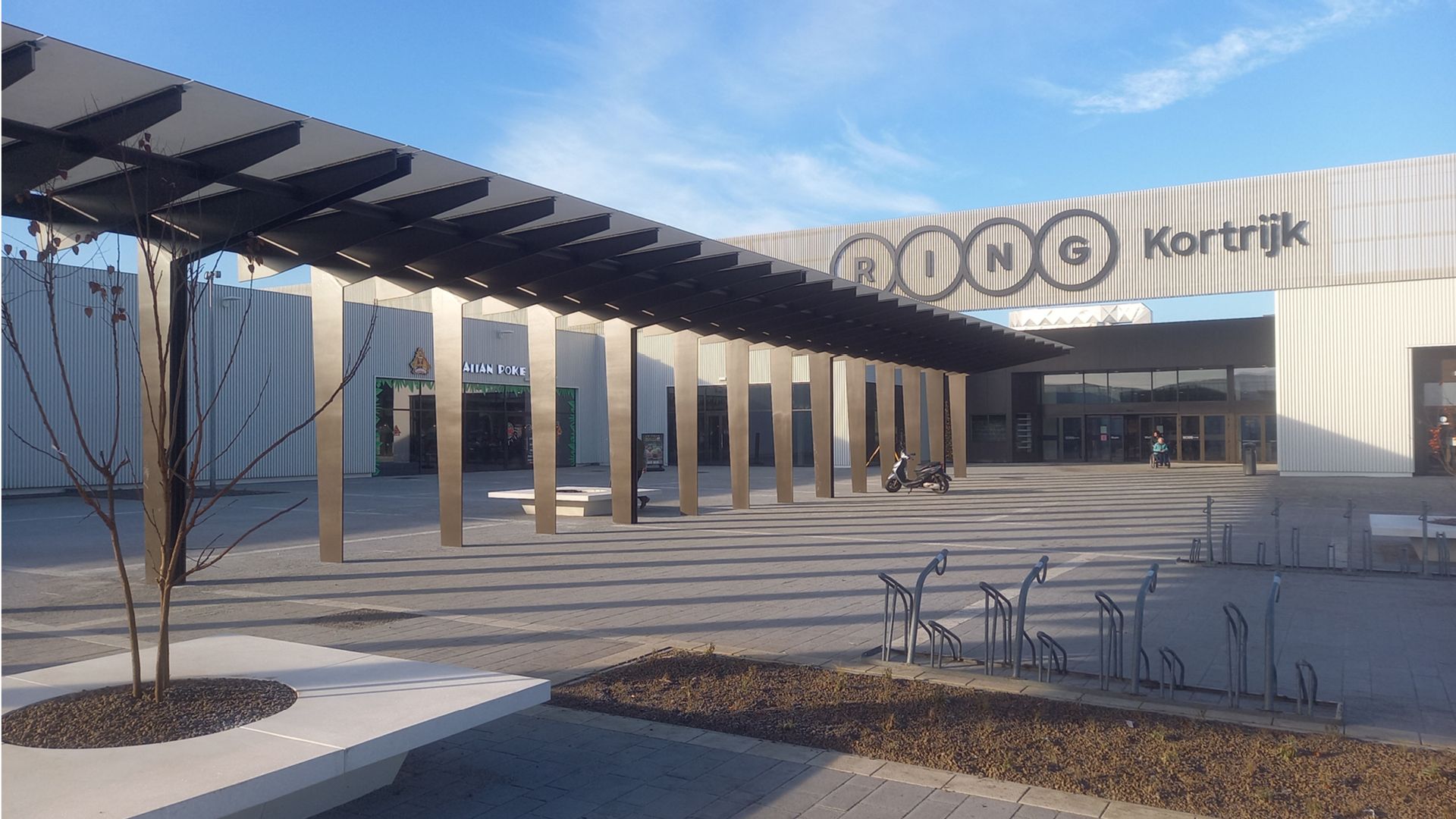 Le centre commercial Ring Shopping Kortrijk date des années 1970 et avait besoin d'une rénovation complète. Le nouveau look moderne, conçu et visualisé par Abscis Architects, est obtenu grâce à de nouvelles zones d'entrée, des façades plus hautes, des passerelles couvertes, des aires de repos et une place pour les événements. Le résultat est un ensemble plus élégant dans un cadre de verdure agréable.